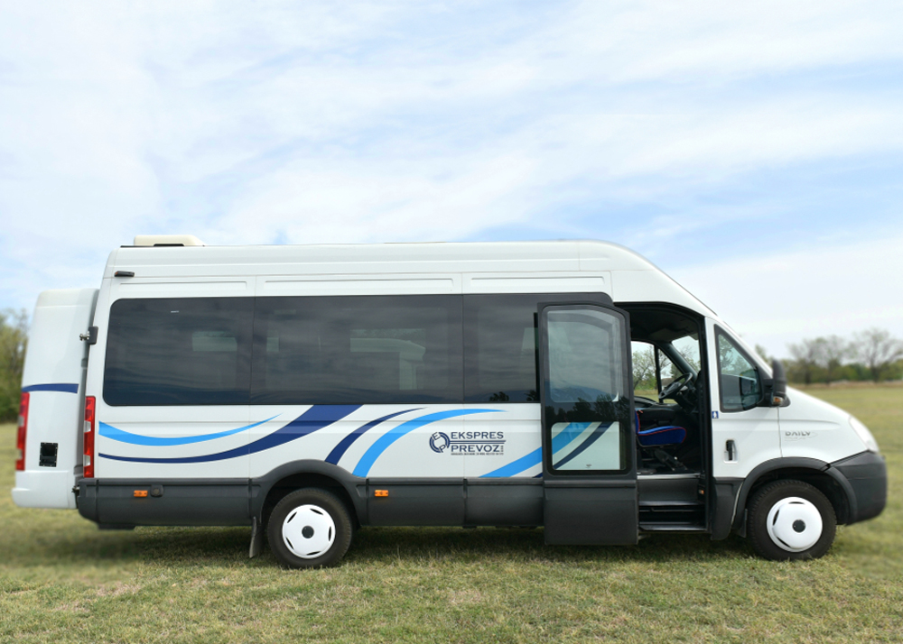 Vozilo 1 Štampa El. pošta Vozilo novije generacije, visokoturistički minibus Broj sedišta: 20+1 Oprema: klima uređaj, Webasto audio oprema podesiva sedišta naslona fabrička panoramska stakla galerije za prtljag sa LED osvetljenjem dodatni prtljažni prostor (SKIBOX za bezbedno odlaganje Vašeg prtljaga i stvari) Prethodna Sledeća